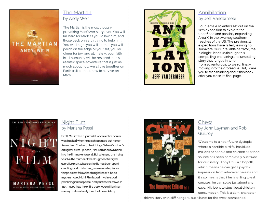 I am still playing around with it, but below is an example of 4 shelf talkers with 2 newer titles and 2 backlist options that I created in a matter of minutes. If you use this link, you can pull the sheet up in its own tab. That will also allow you to click on the book covers or titles to link to my full reviews here on RA for All.